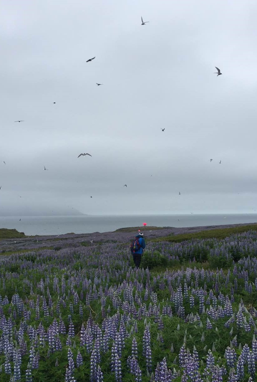 Lilly and Mads were joined by Gail today on their adventure to the tern nesting grounds. They scouted possible tern nests to sample and install temperature probes. While they (and anyone who passed by) were all hassled by the terns protective of their nests, unassuming Gail seemed to be the unfortunate prime target of the arctic terns this day and came back home covered in tern poop having (barely) survived one too many tern swoop attacks.